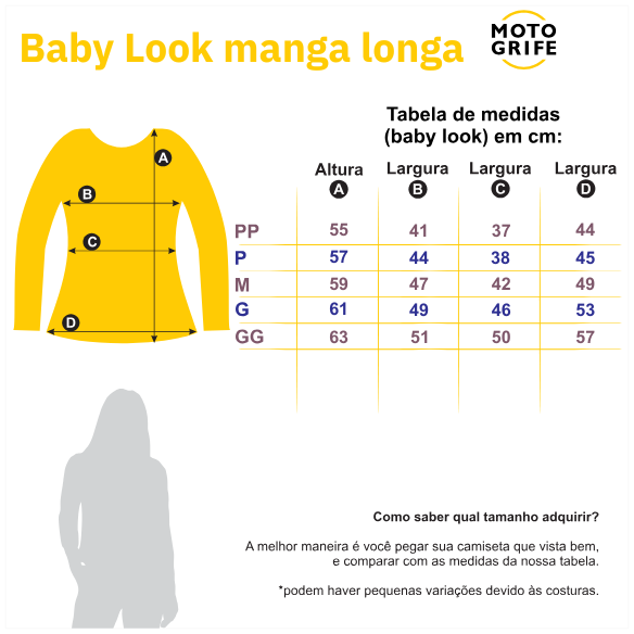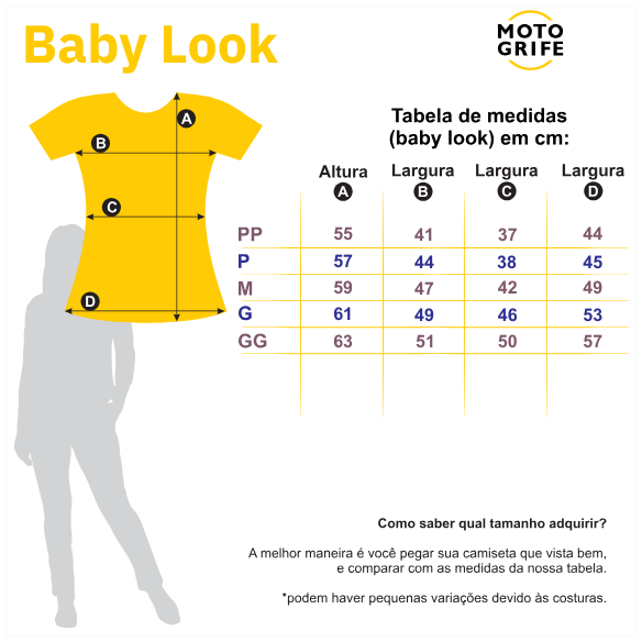 Antes de escolher, não deixe de conferir nossa tabela de medidas para encontrar o tamanho perfeito para você.